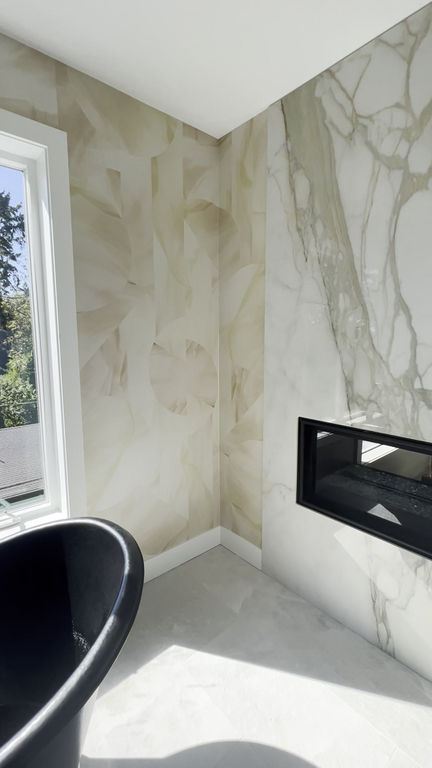 Electric Glam was a full hard surface package paired with a furniture package, wallpaper and custom drapery with custom cabinetry design throughout. A flair of opulence melded with raw materials like iron, chiseled limestone and Persian Jade create a truly unique glam aesthetic.